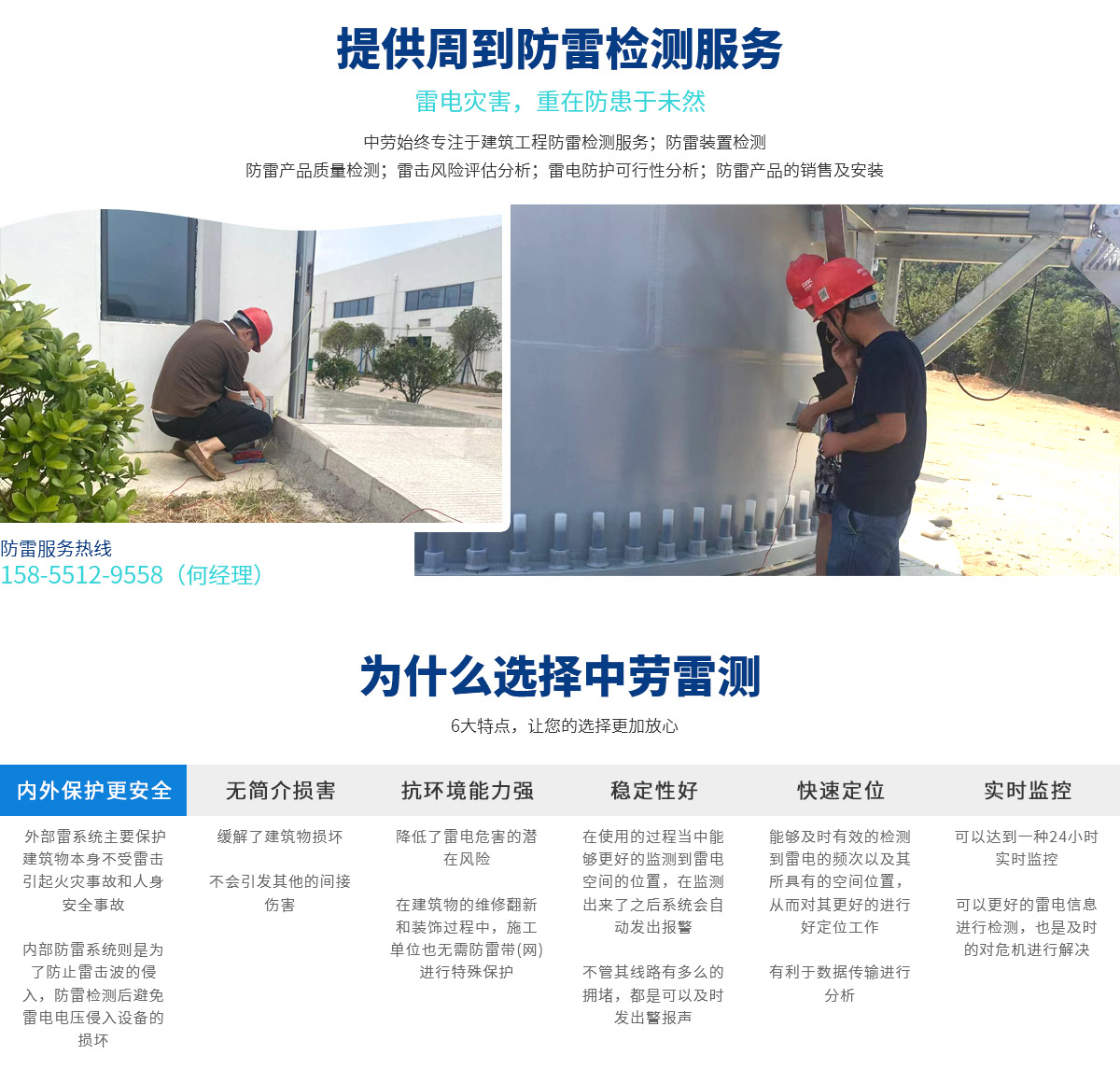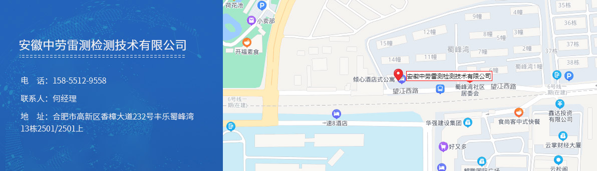 安徽中勞雷測(cè)檢測(cè)技術(shù)有限公司是一家主要從事防雷裝置檢測(cè)、防雷工程施工、防雷產(chǎn)品銷(xiāo)售及安裝,雷擊風(fēng)險(xiǎn)評(píng)估等工作的公司。 為提供周到的技術(shù)服務(wù),公司先后置辦了200多平方米的辦公場(chǎng)所;配備了防雷接地電阻測(cè)試儀、防雷元件測(cè)試儀、土壤電阻率測(cè)試儀、環(huán)路電阻測(cè)試儀等一批國(guó)內(nèi)外先進(jìn)的檢測(cè)設(shè)備。 公司營(yíng)業(yè)范圍:建筑工程防雷檢測(cè)服務(wù);防雷裝置檢測(cè);防雷產(chǎn)品質(zhì)量檢測(cè);雷擊風(fēng)險(xiǎn)評(píng)估分析;雷電防護(hù)可行性分析;防雷產(chǎn)品的...